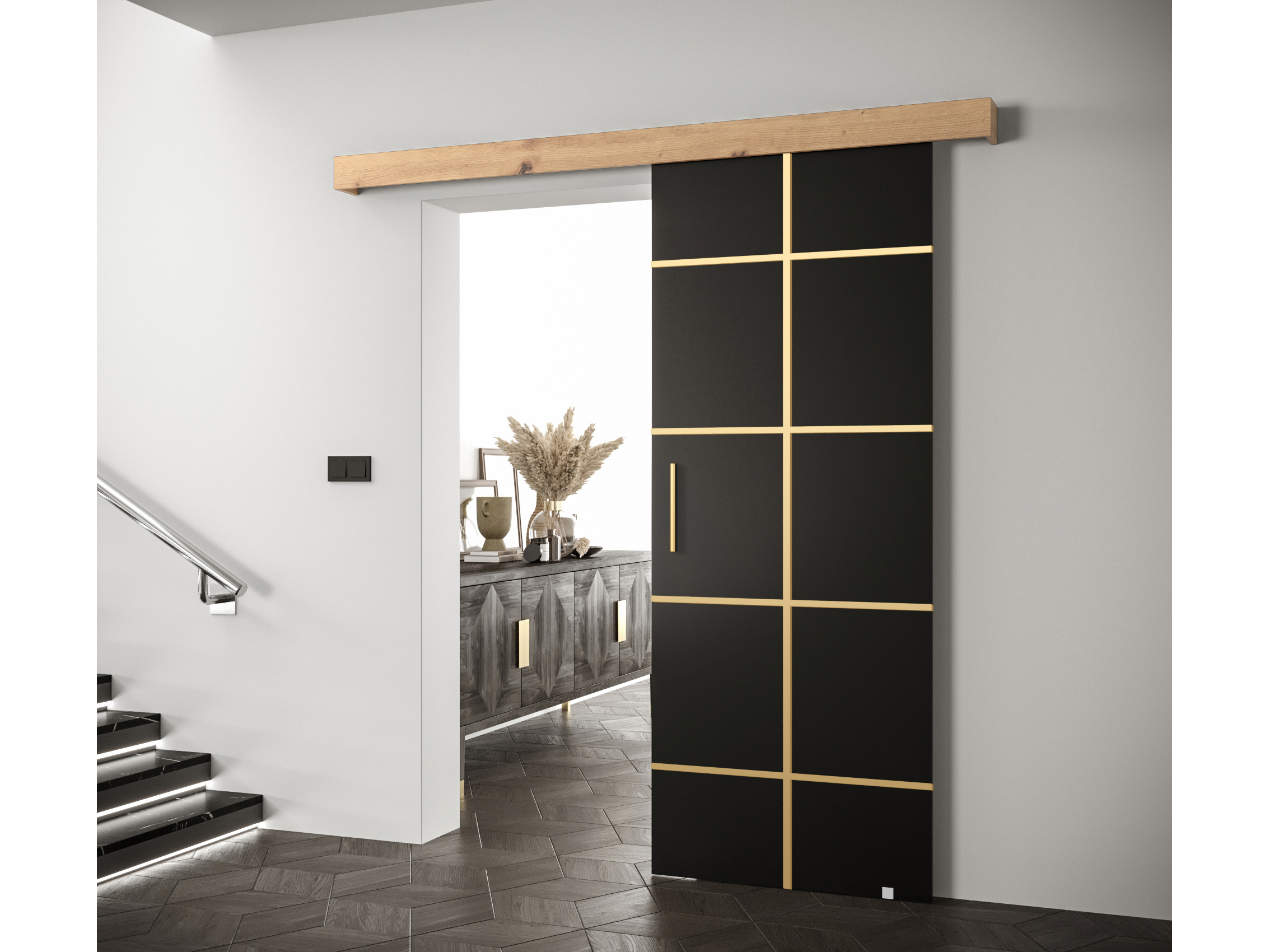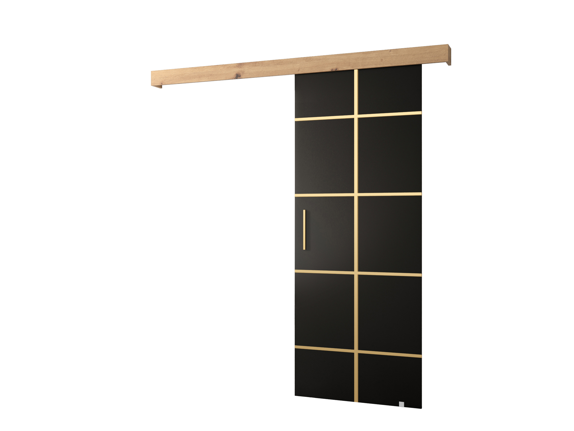Uși culisante 90 cm Sharlene III (negru mat + stejar artisan + auriu)