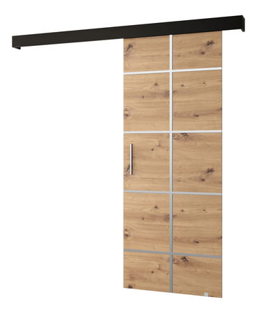 Uși culisante 90 cm Sharlene III (stejar artisan + negru mat + argintiu)