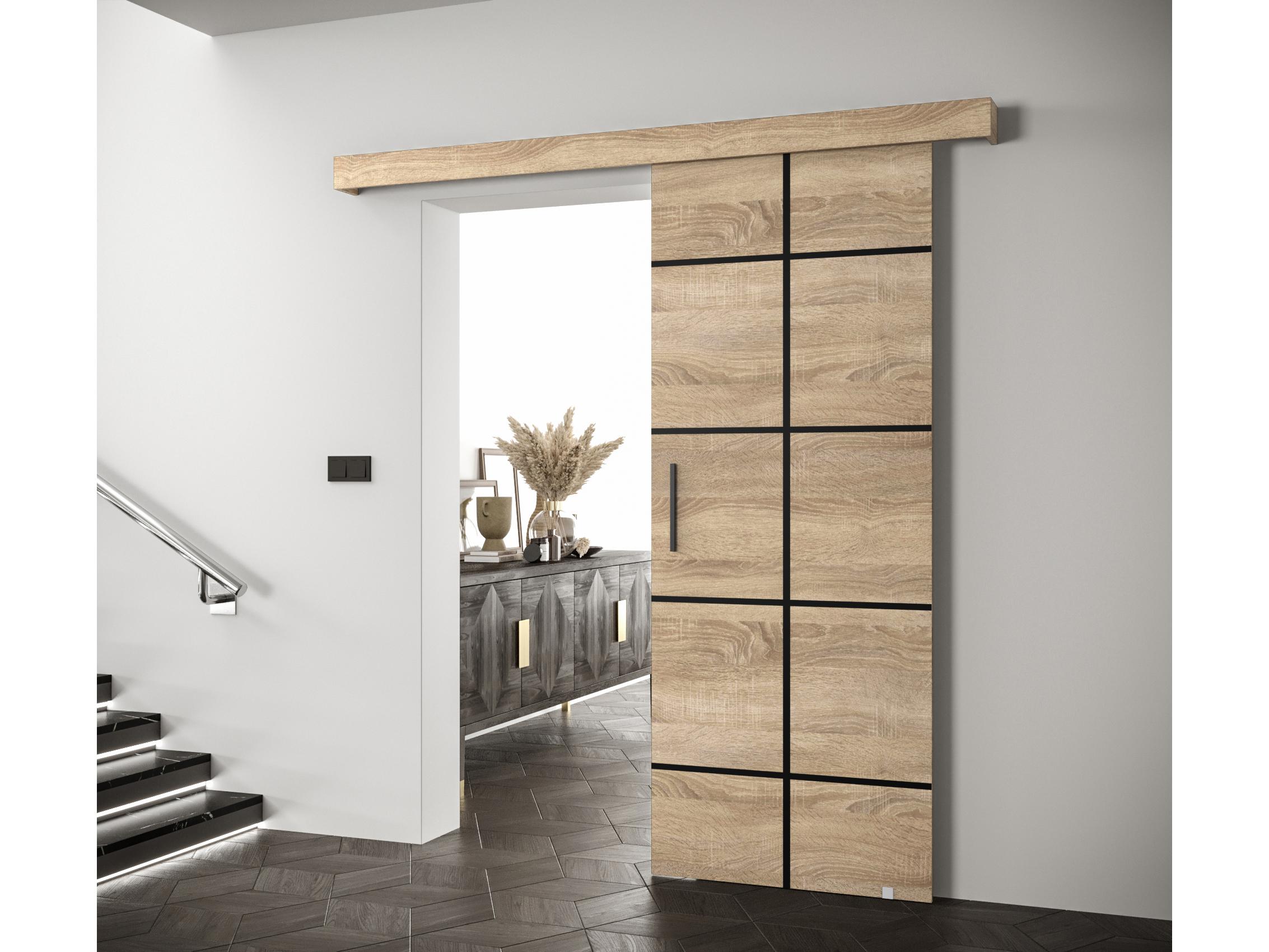 Uși culisante 90 cm Sharlene III (stejar sonoma + stejar sonoma + negru)