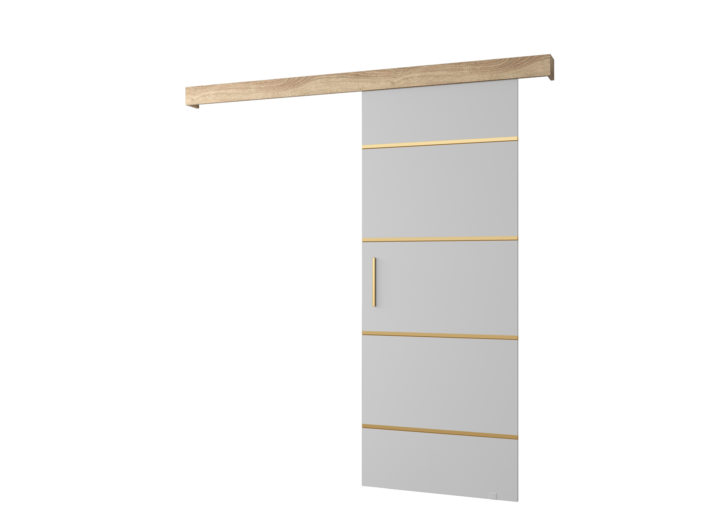 Uși culisante 90 cm Sharlene IV (alb mat + stejar sonoma + auriu)