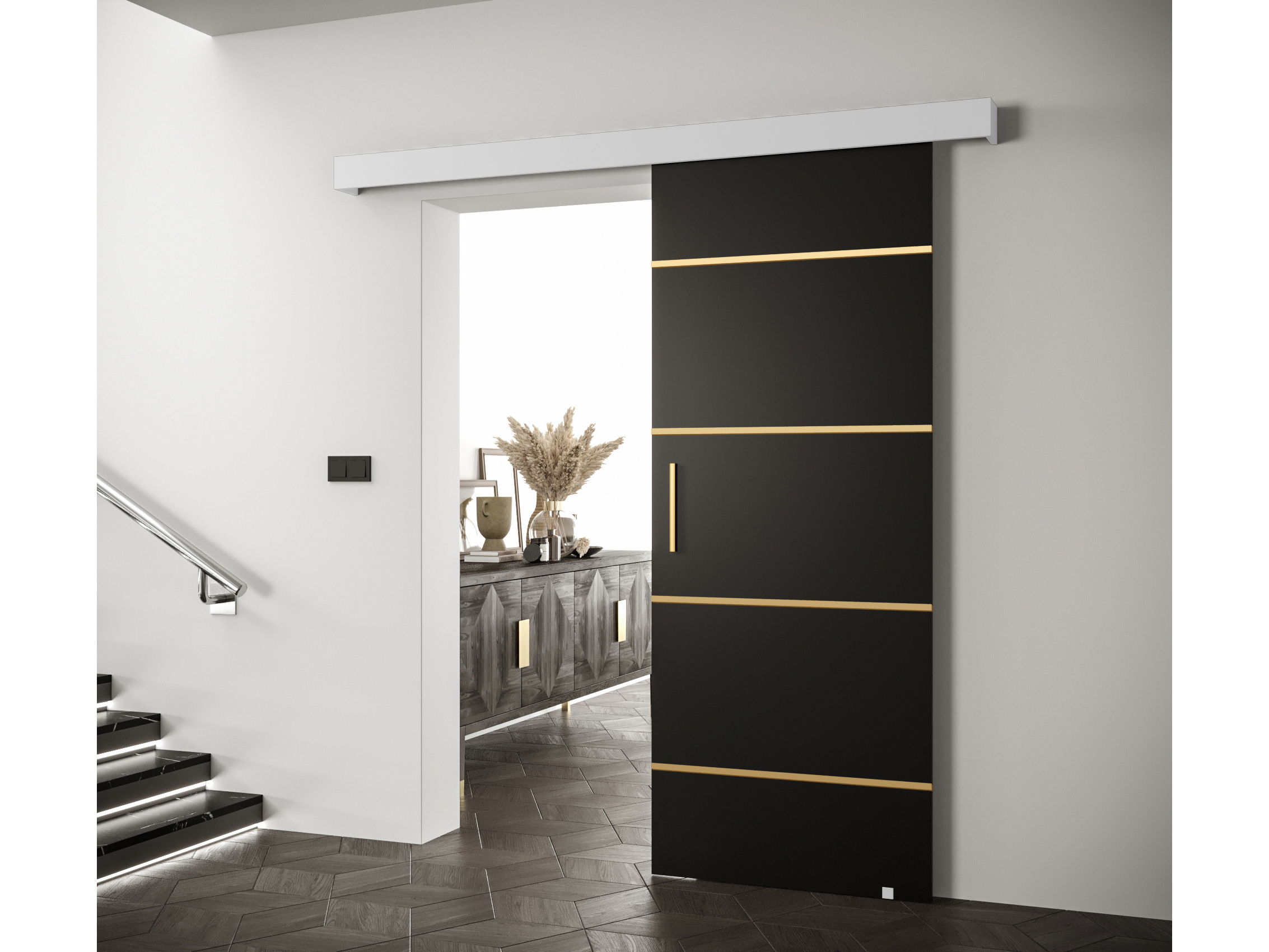 Uși culisante 90 cm Sharlene IV (negru mat + alb mat + auriu)