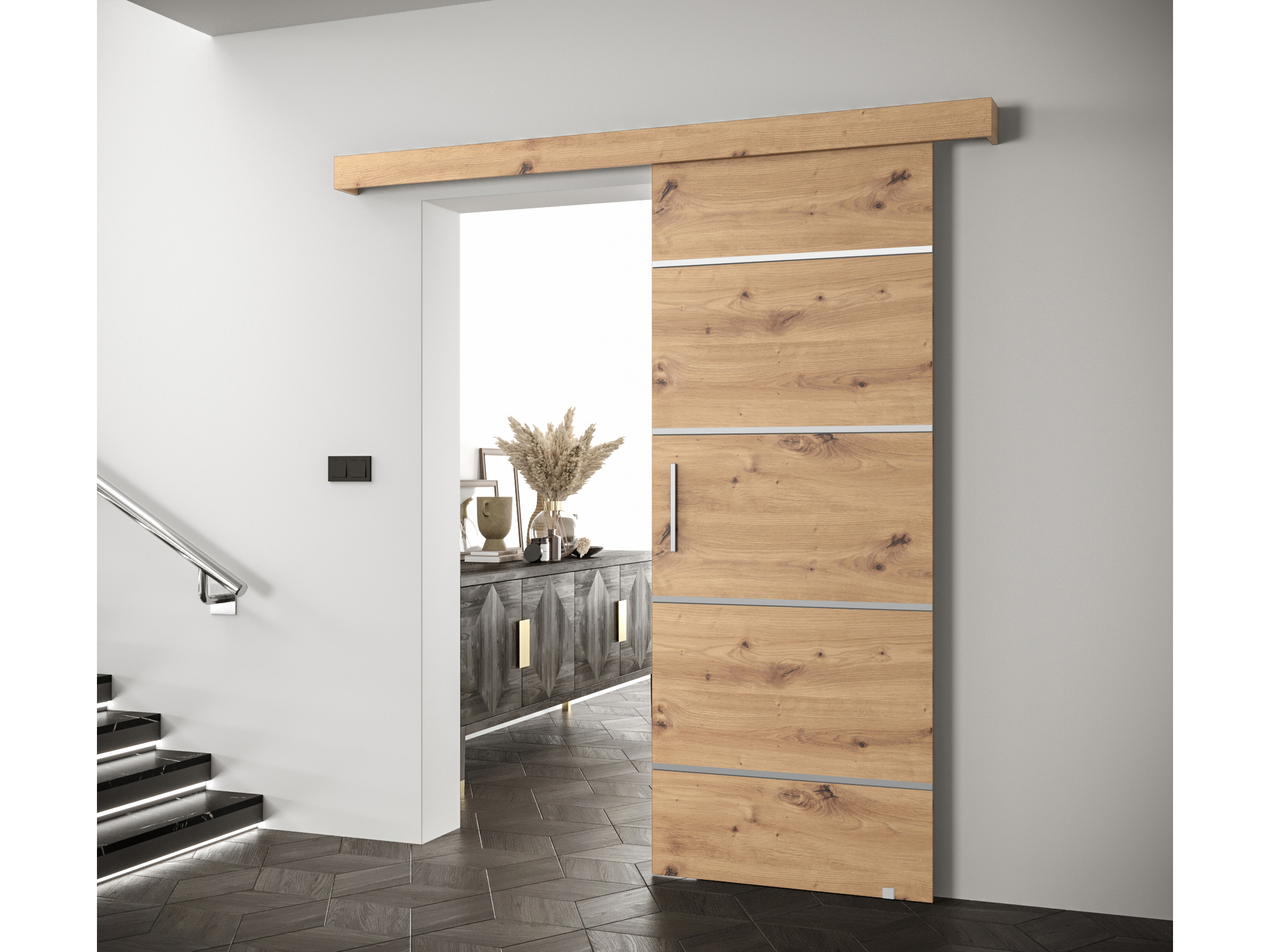 Uși culisante 90 cm Sharlene IV (stejar artisan + stejar artisan + argintiu)