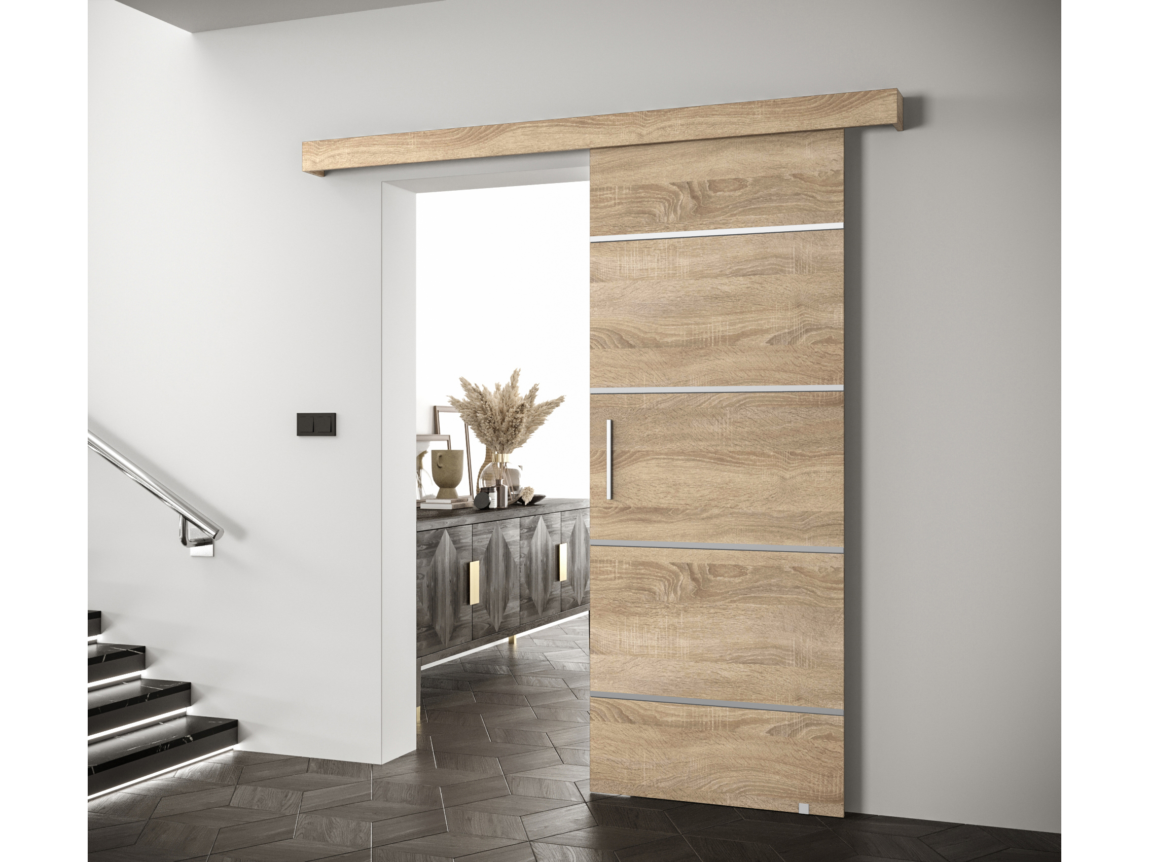 Uși culisante 90 cm Sharlene IV (stejar sonoma + stejar sonoma + argintiu)