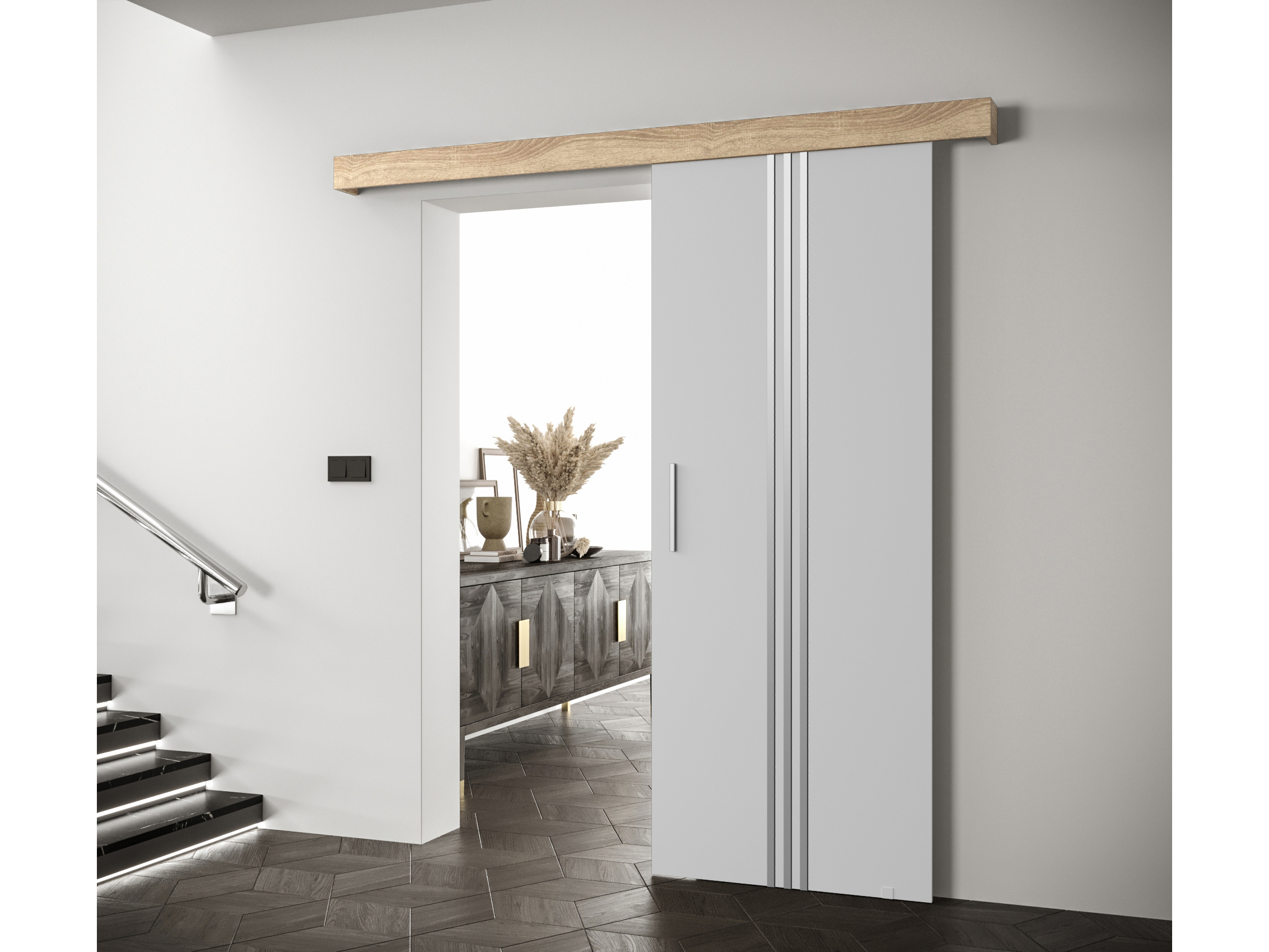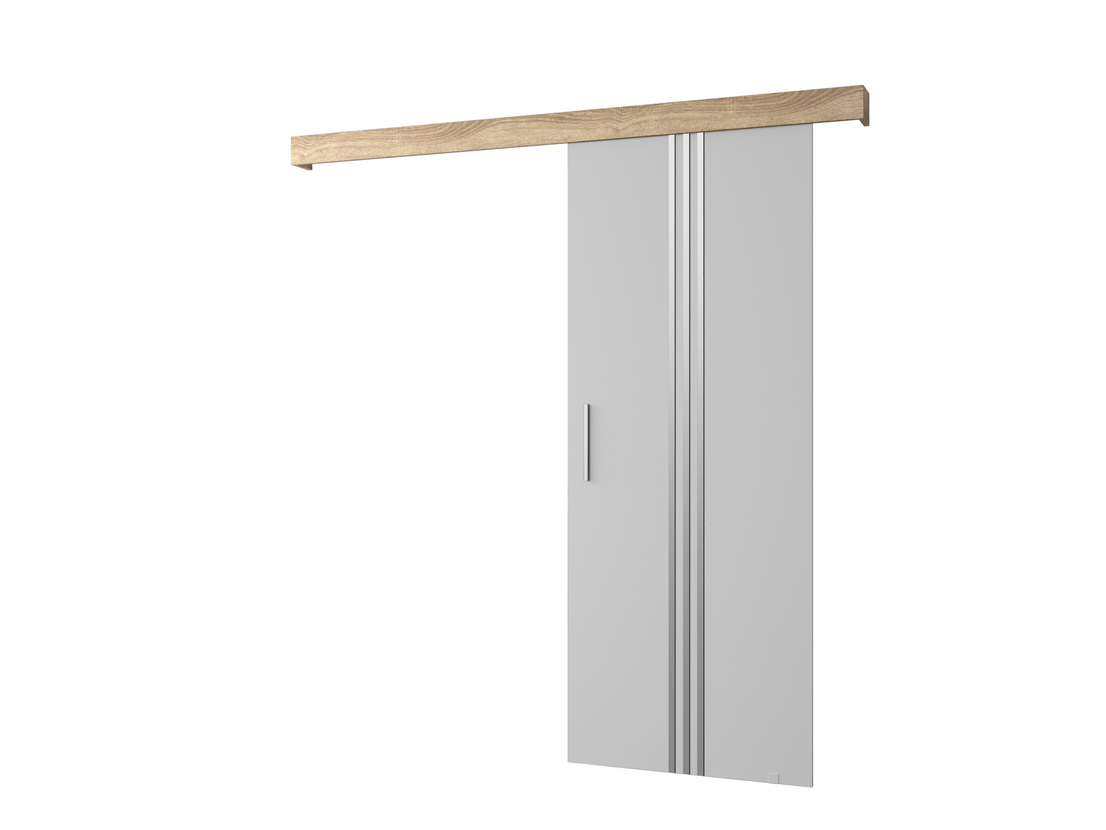 Uși culisante 90 cm Sharlene V (alb mat + stejar sonoma + argintiu)