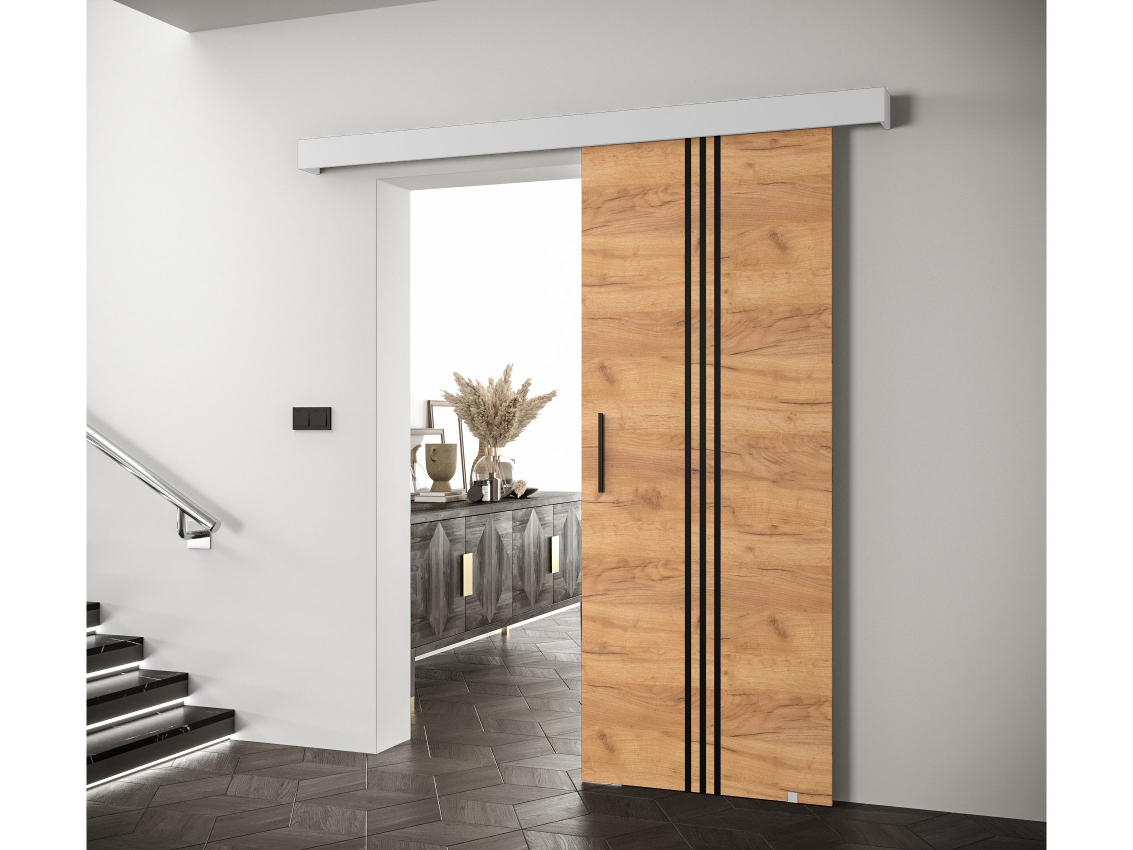 Uși culisante 90 cm Sharlene V (craft auriu + alb mat + negru)