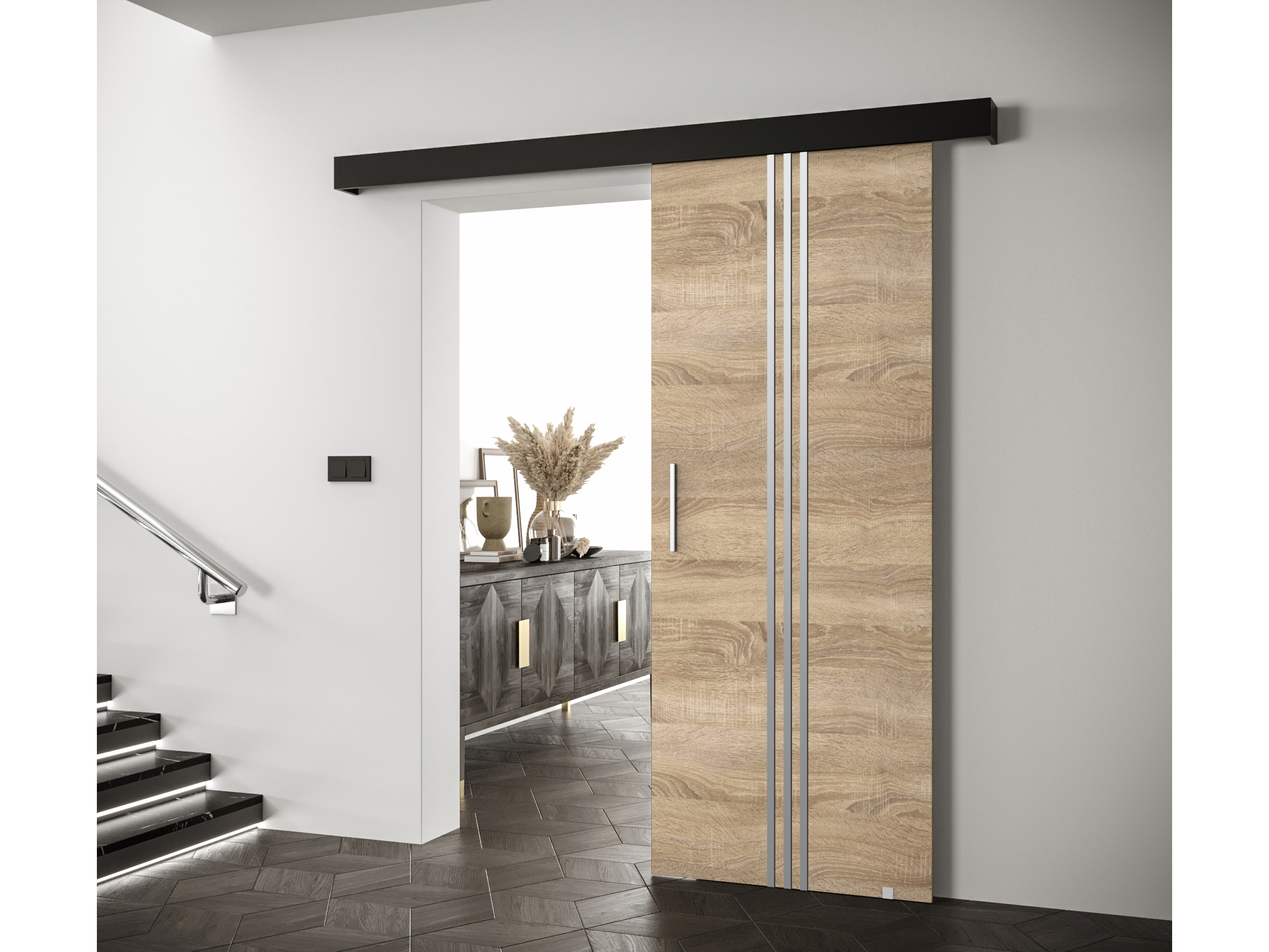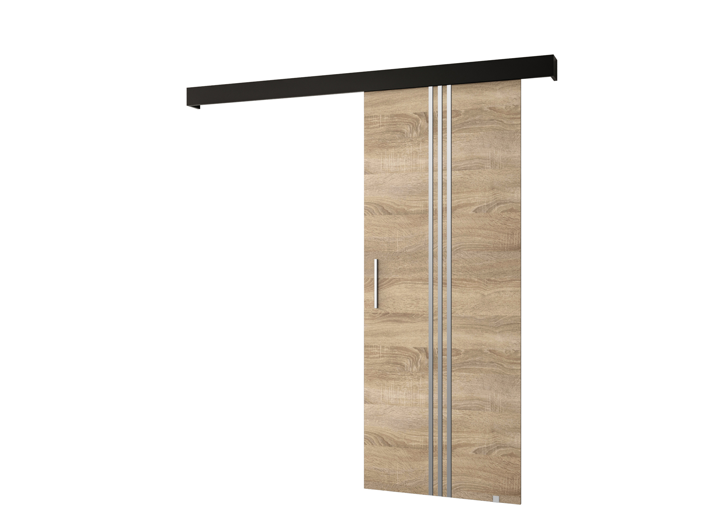 Uși culisante 90 cm Sharlene V (stejar sonoma + negru mat + argintiu)