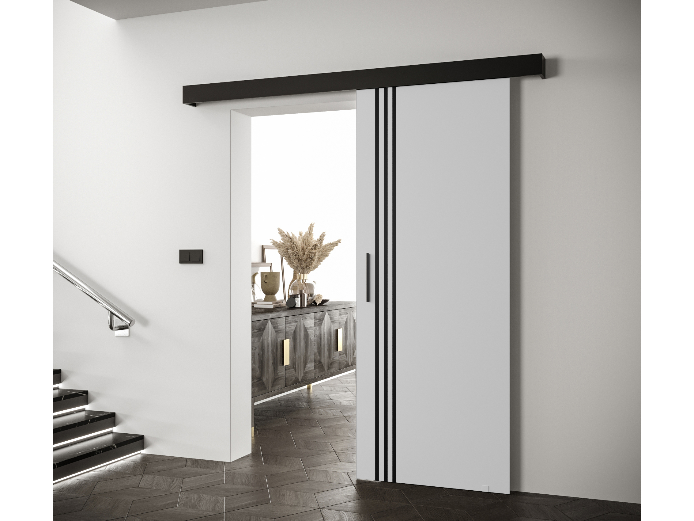 Uși culisante 90 cm Sharlene VI (alb mat + negru mat + negru)