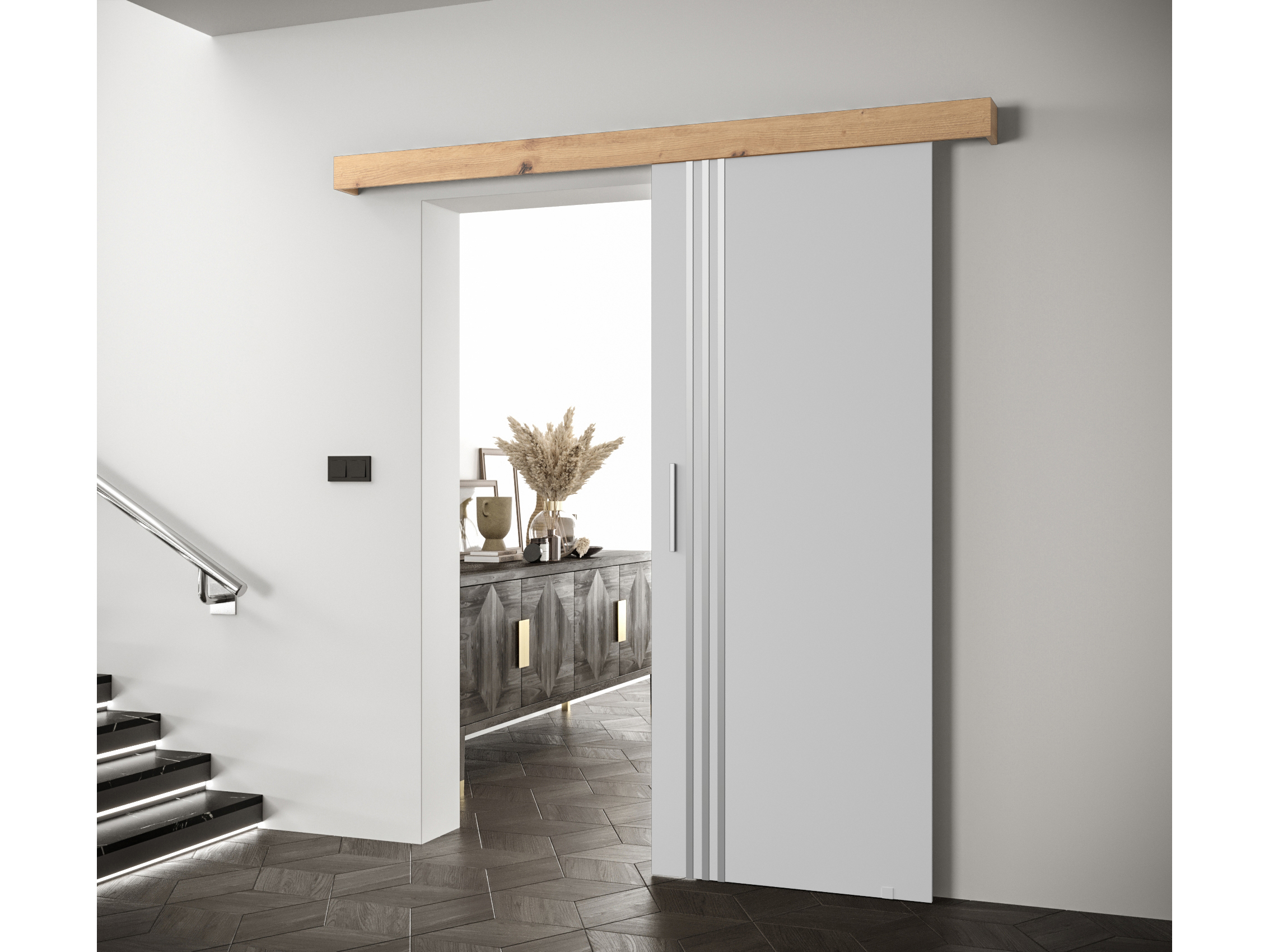 Uși culisante 90 cm Sharlene VI (alb mat + stejar artisan + argintiu)