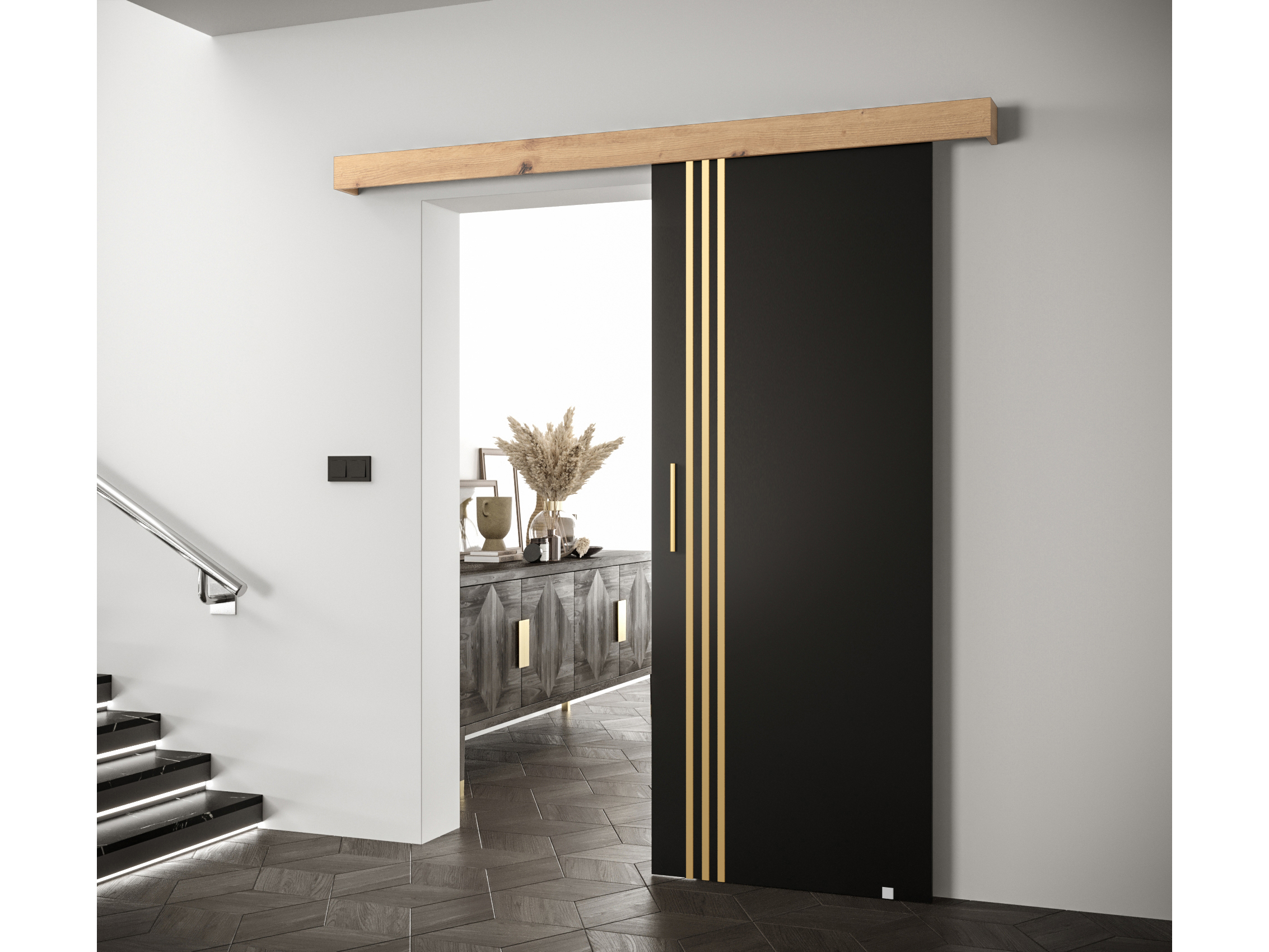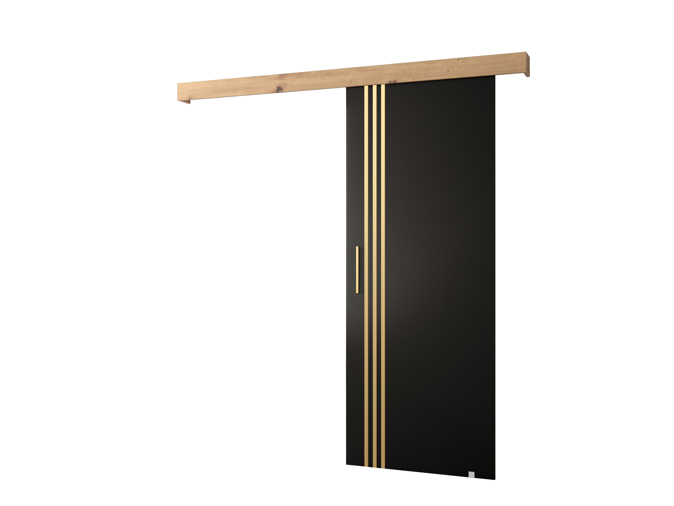 Uși culisante 90 cm Sharlene VI (negru mat + stejar artisan + auriu)
