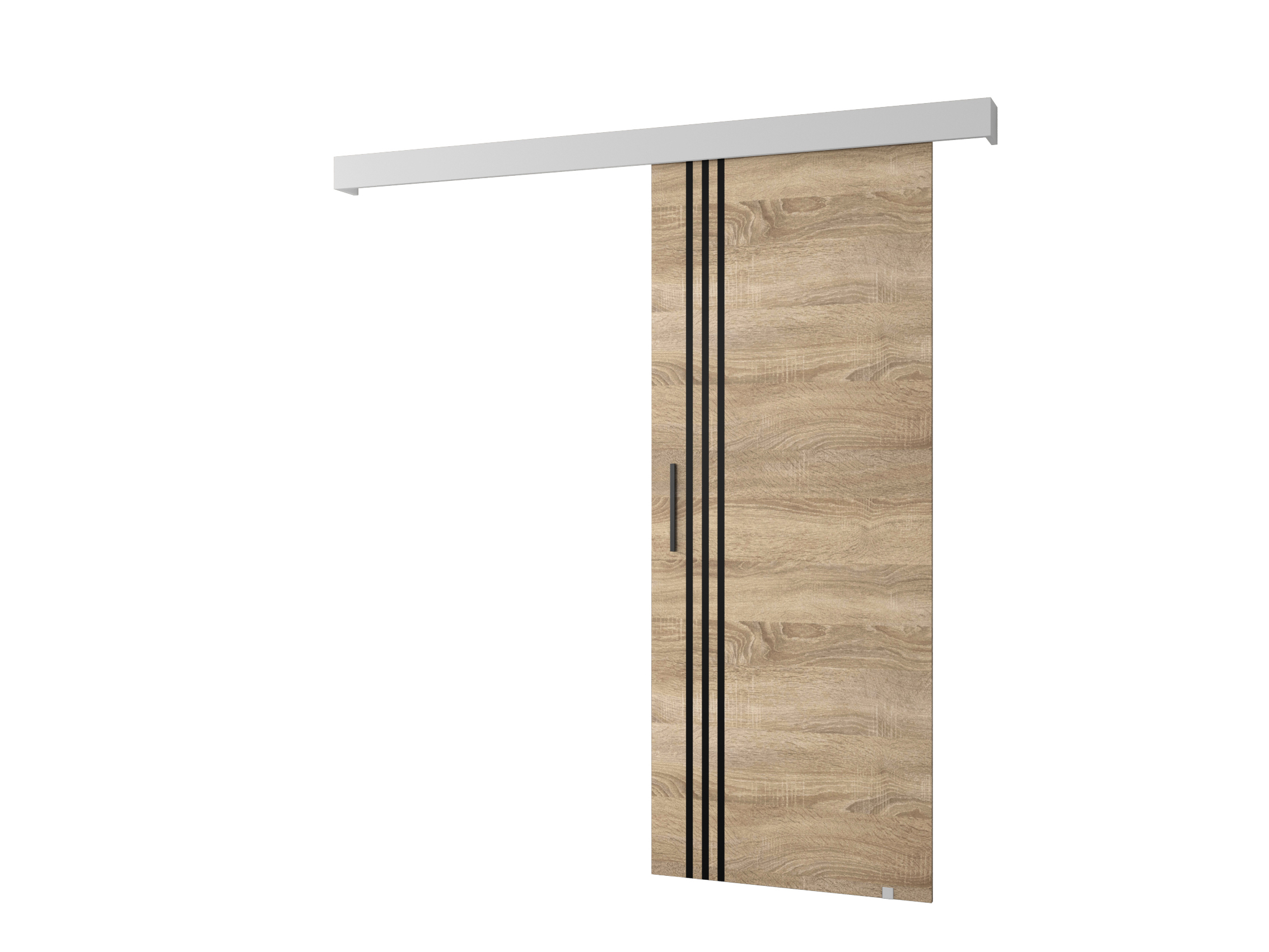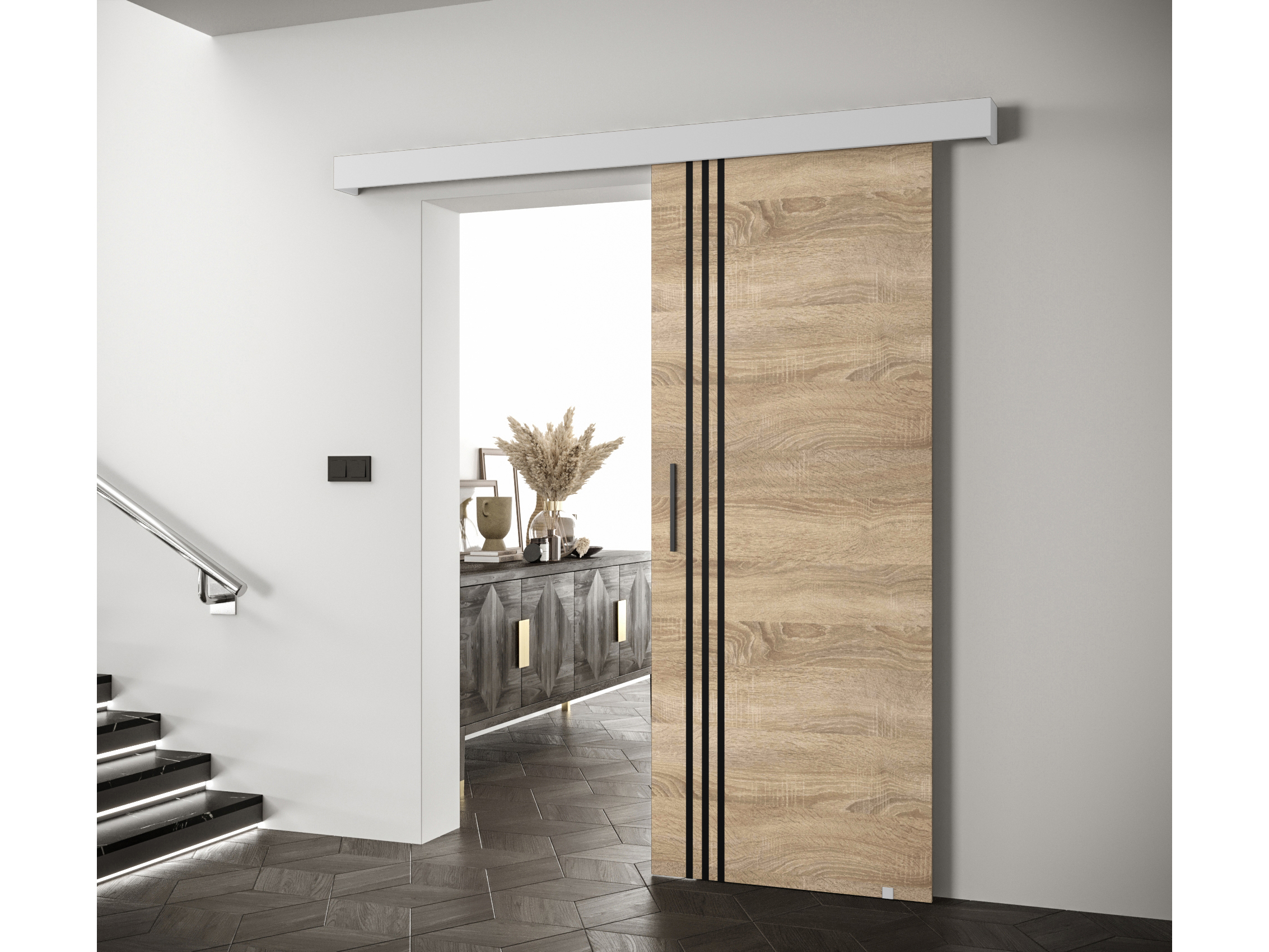 Uși culisante 90 cm Sharlene VI (stejar sonoma + alb mat + negru)