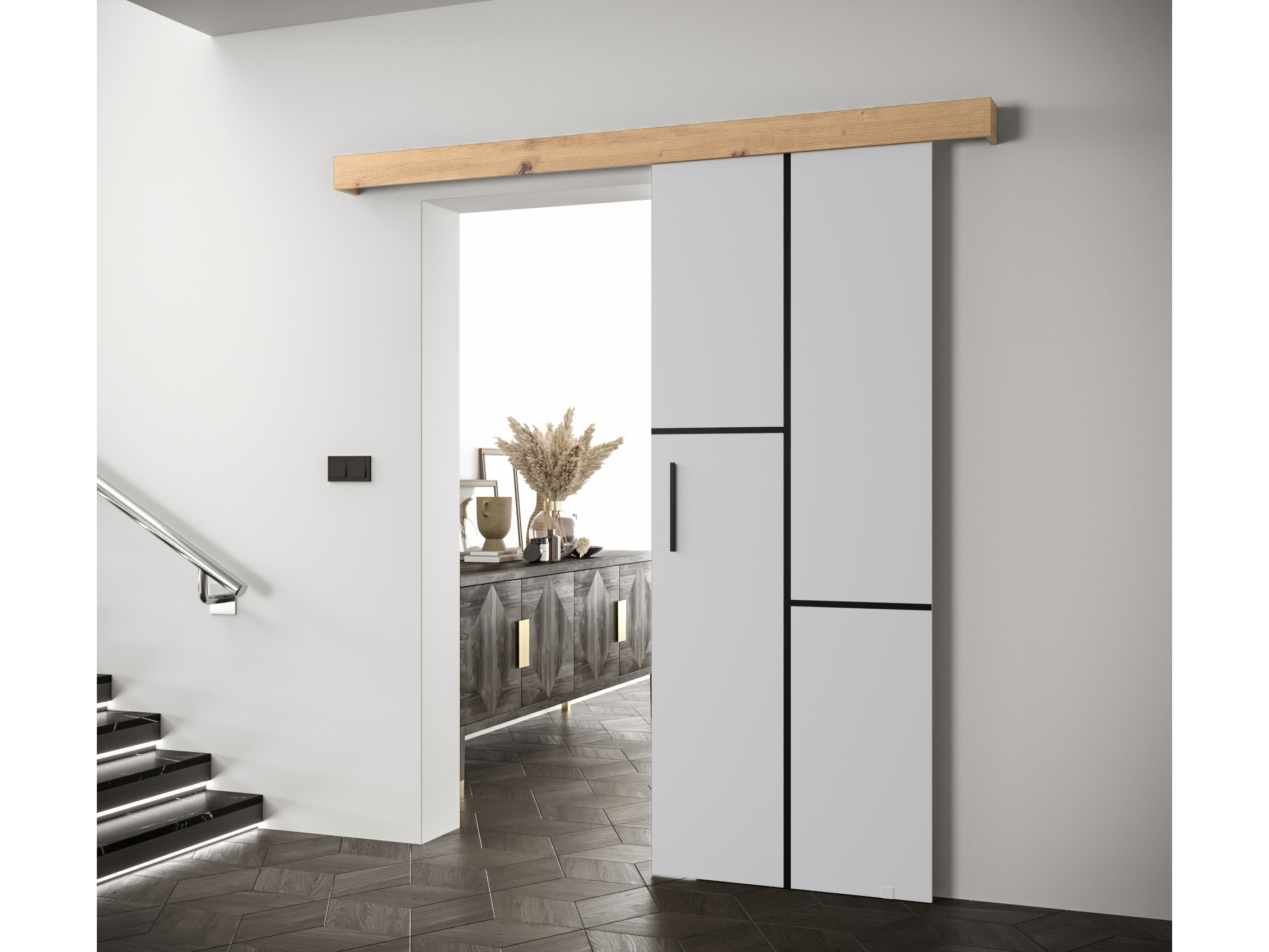 Uși culisante 90 cm Sharlene VII (alb mat + stejar artisan + negru)