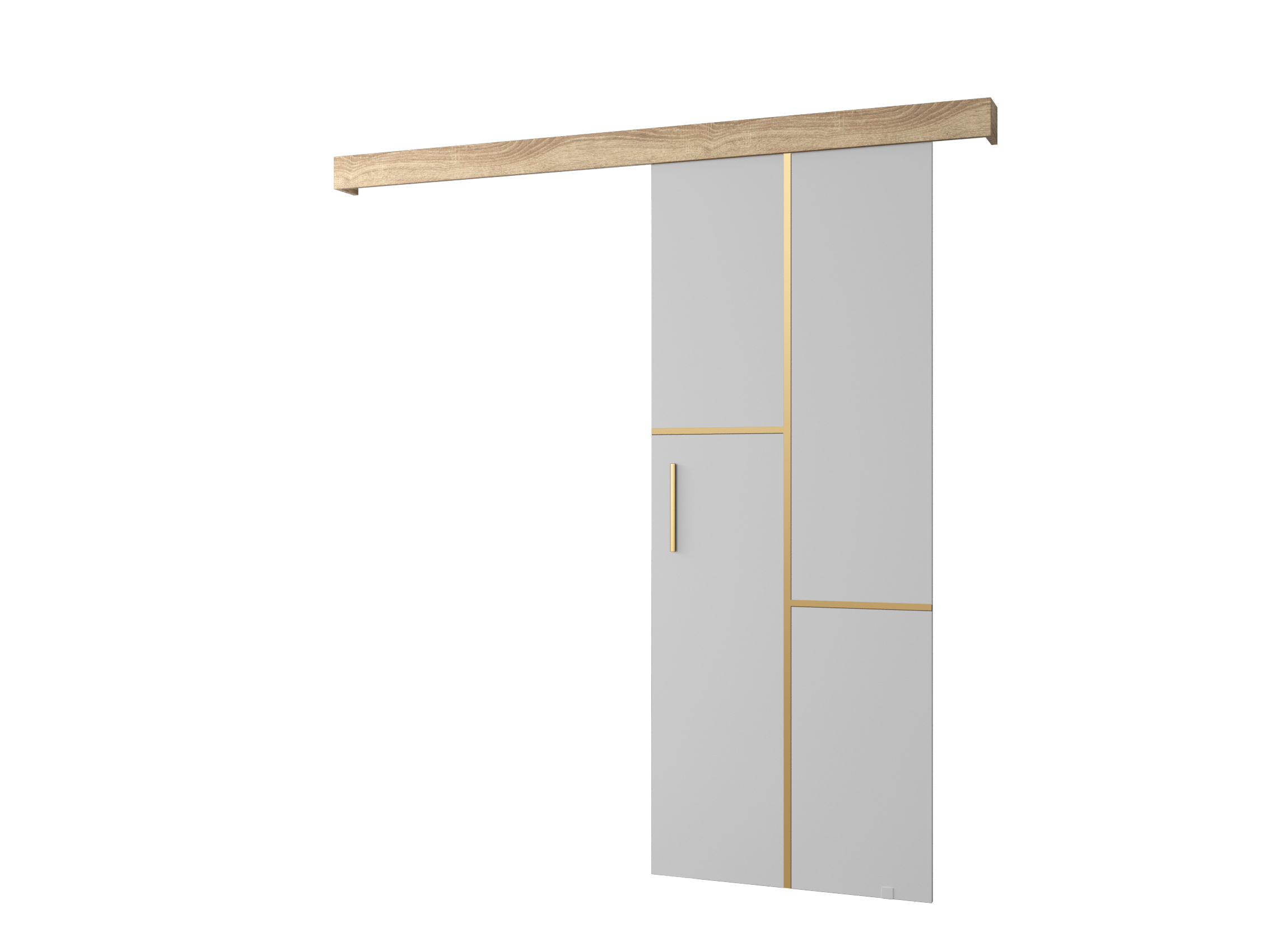 Uși culisante 90 cm Sharlene VII (alb mat + stejar sonoma + auriu)