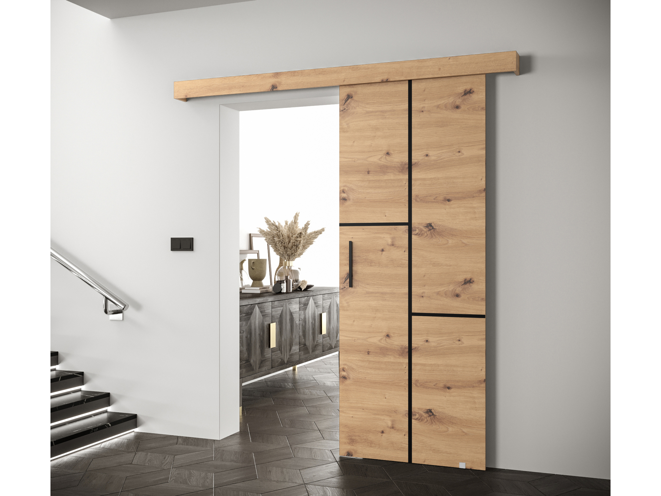 Uși culisante 90 cm Sharlene VII (stejar artisan + negru mat + negru)