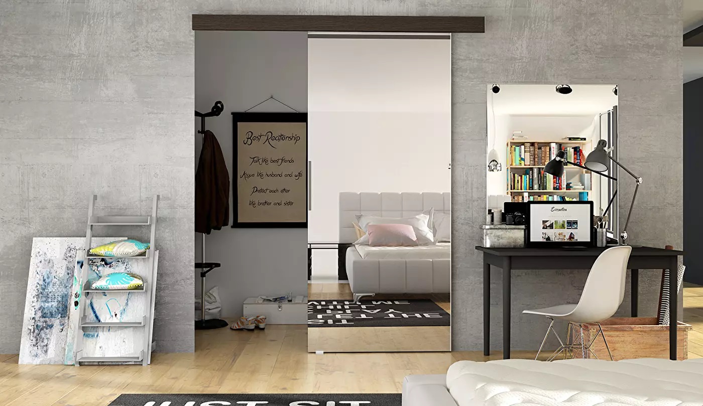 Ușile glisante sunt o soluție perfectă și simplă, potrivită pentru economisirea spațiului pe hol, dormitor, living și camera copiilor. Separă efectiv o cameră de alta, ceea ce mărește optic interiorul în sine. În spatele uși puteți organiza un dulap eficient și funcțional cu multe rafturi și bară pentru umerașe. Acest sistem de uși glisante are dimensiuni de 86 cm x 205 cm și un ghidaj longitudinal de 205 cm.