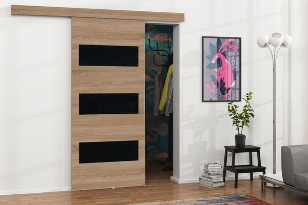Uși culisante Meralia II 100 (Stejar sonoma + Stejar sonoma + negru lacobel)