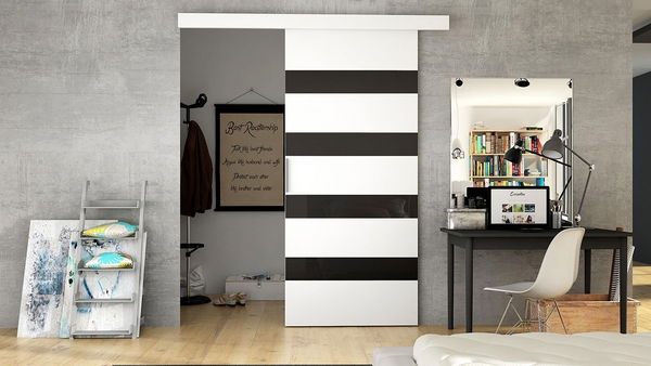Uși glisant de interior Orenia V (alb + negru lacobel)