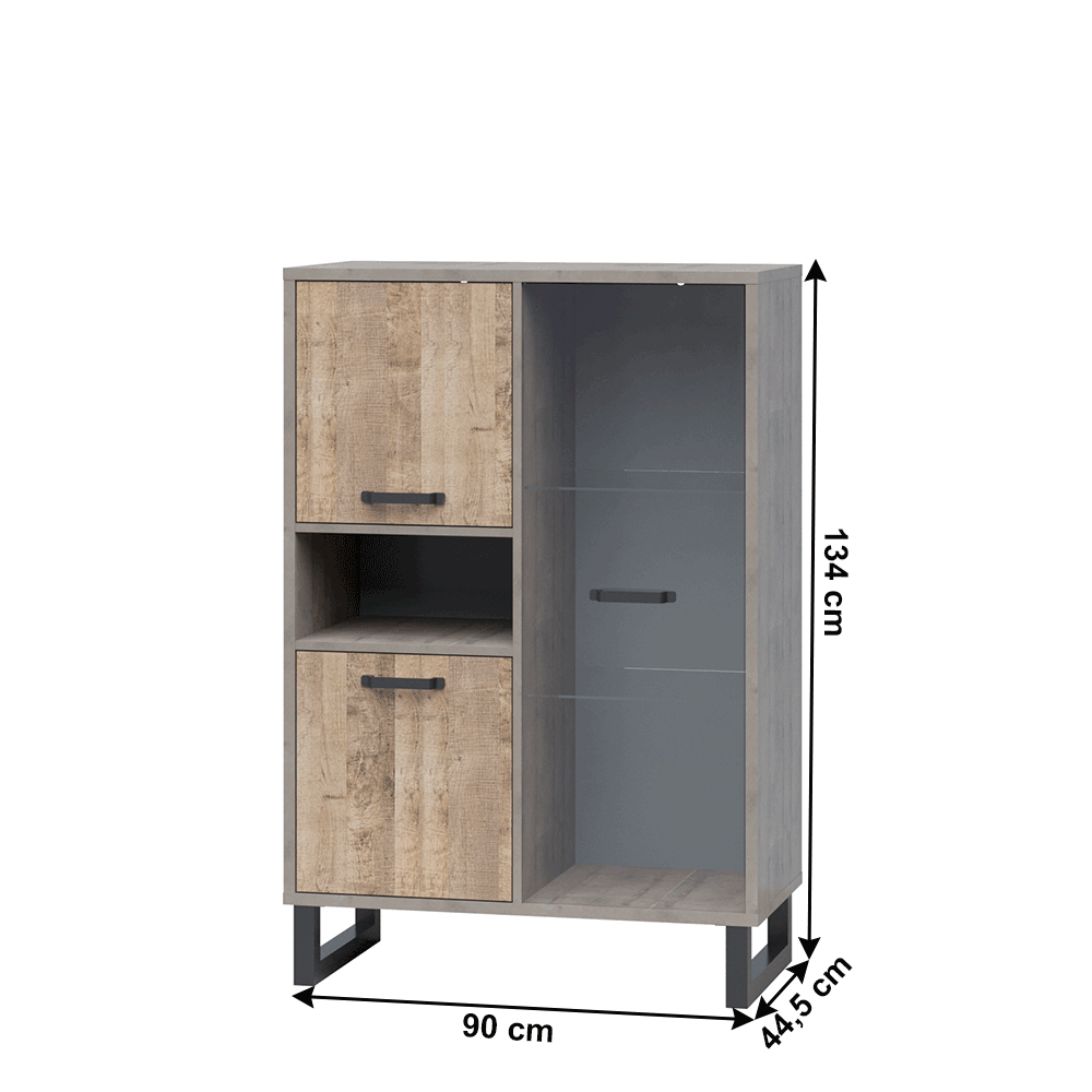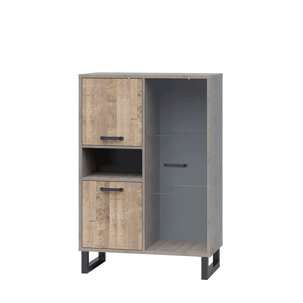 Vitrină Bareni 2D1W (stejar nisipiu + gri)