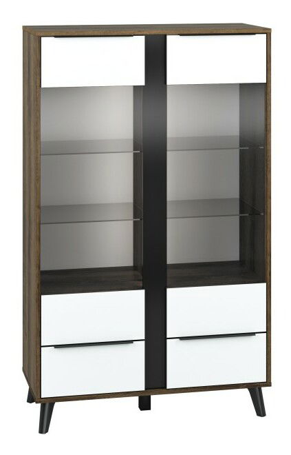 Vitrină Bari 05 (stejar monastery + alb alpin + Negru lucios)