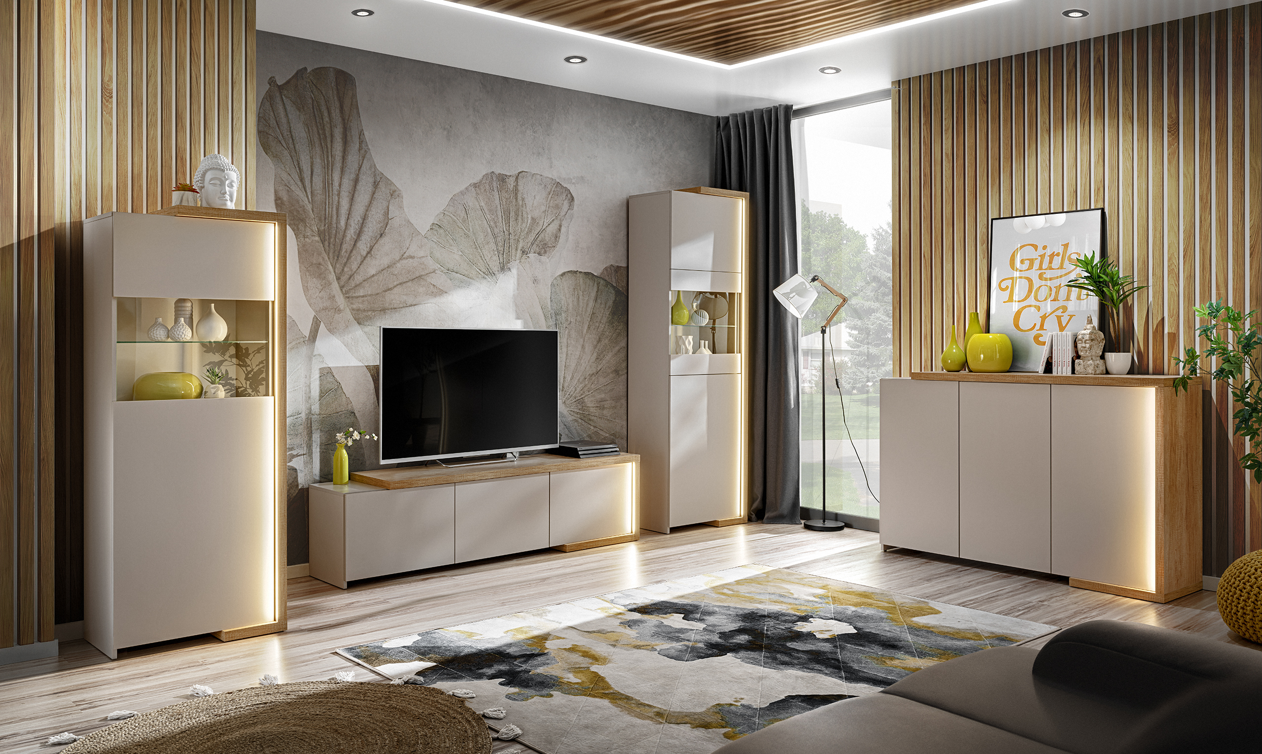 Vitrină Dares V02 (Stejar grand natural + Cașmir)