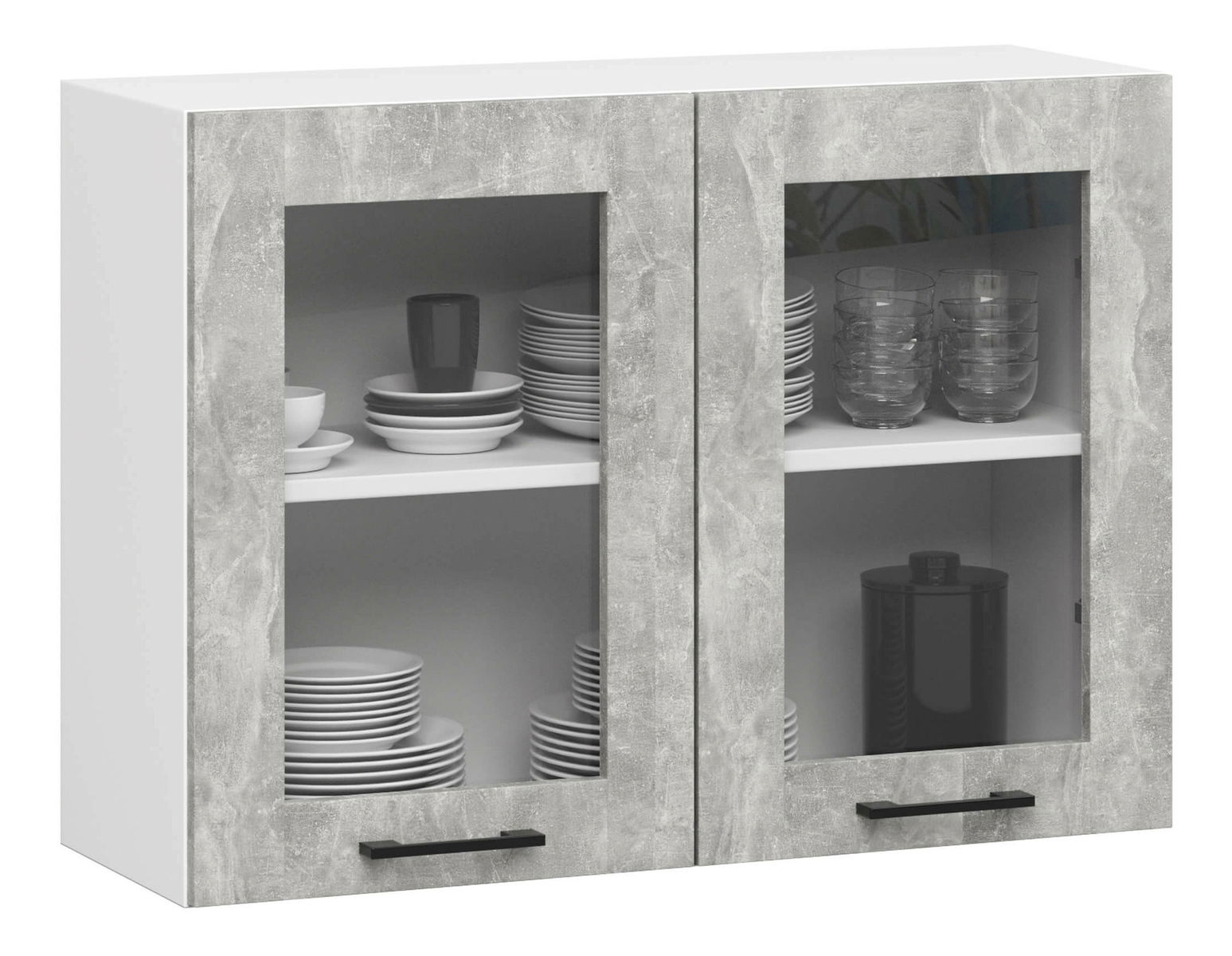 Vitrină de bucătărie superioară Organo 580 (alb + beton)