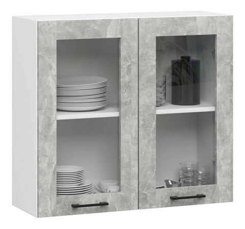 Vitrină de bucătărie superioară Organo 720 (alb + beton)