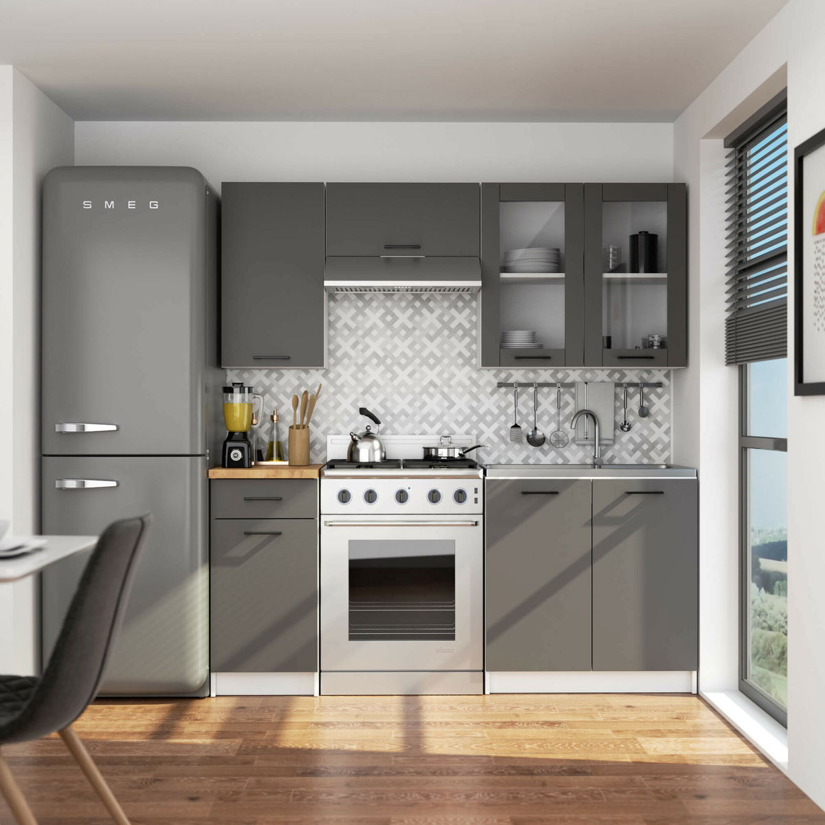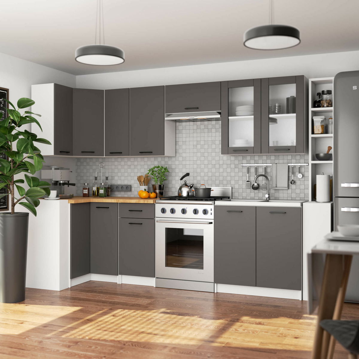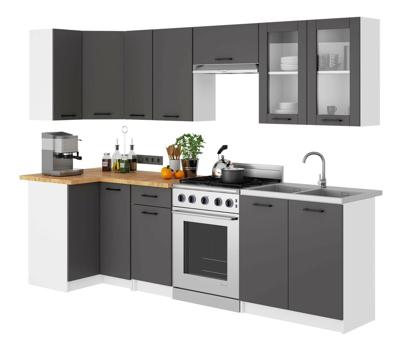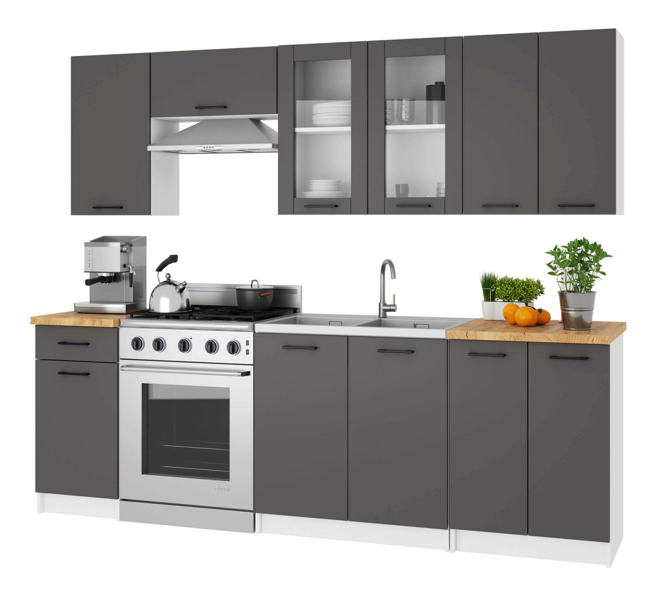 Vitrină de bucătărie superioară Organo 720 (alb + grafit)