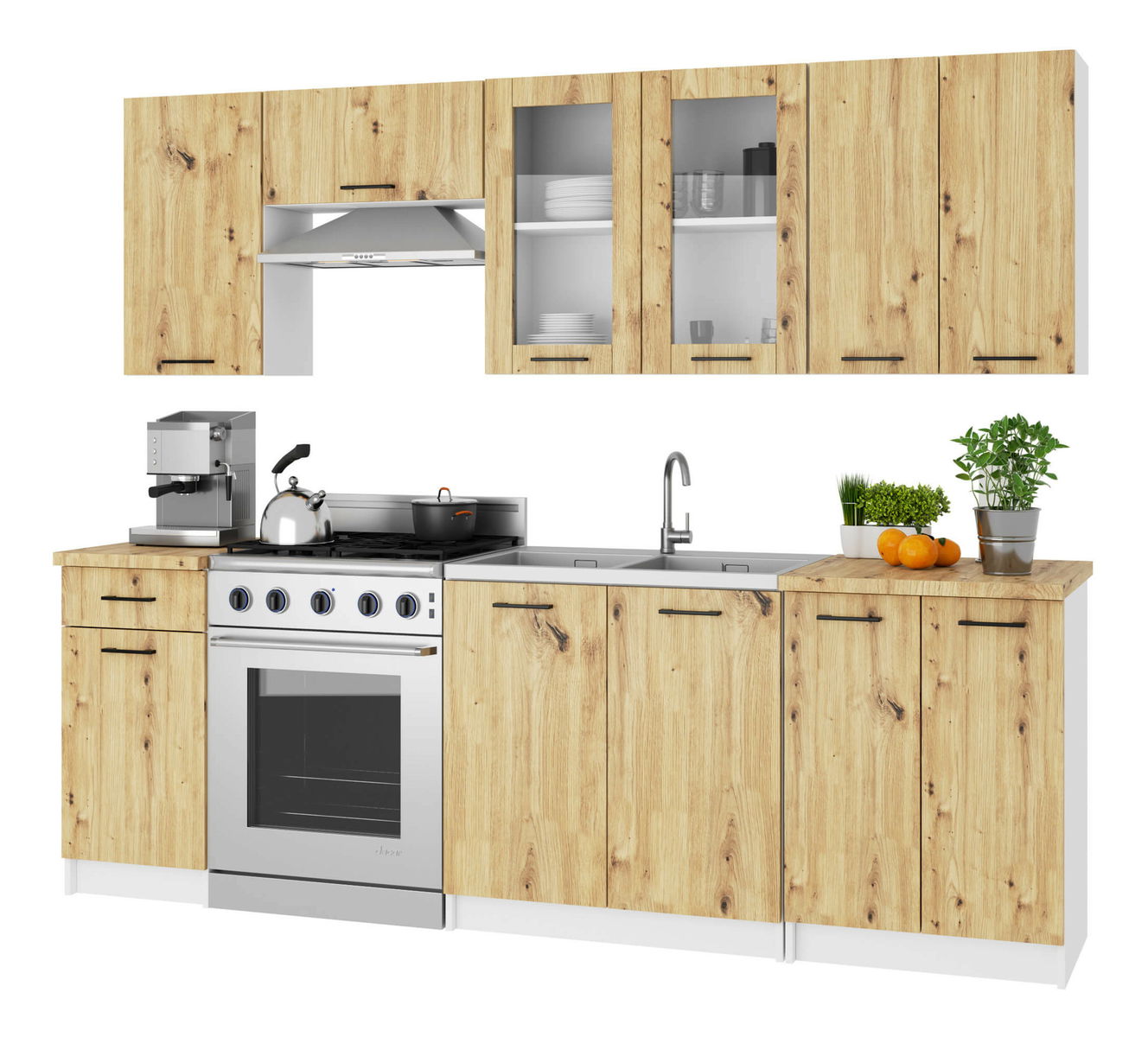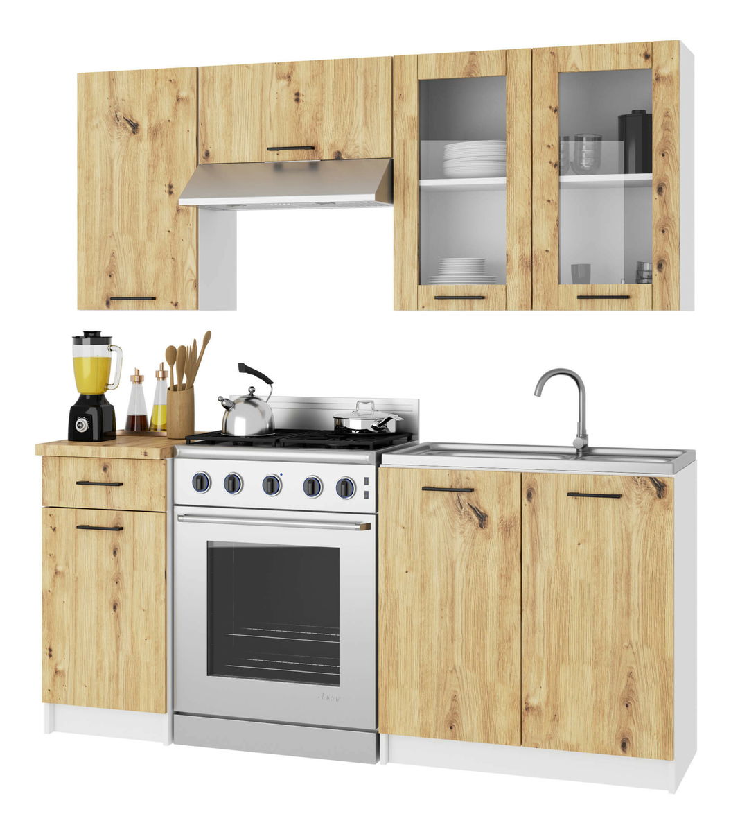 Vitrină de bucătărie superioară Organo 720 (alb + stejar artisan)
