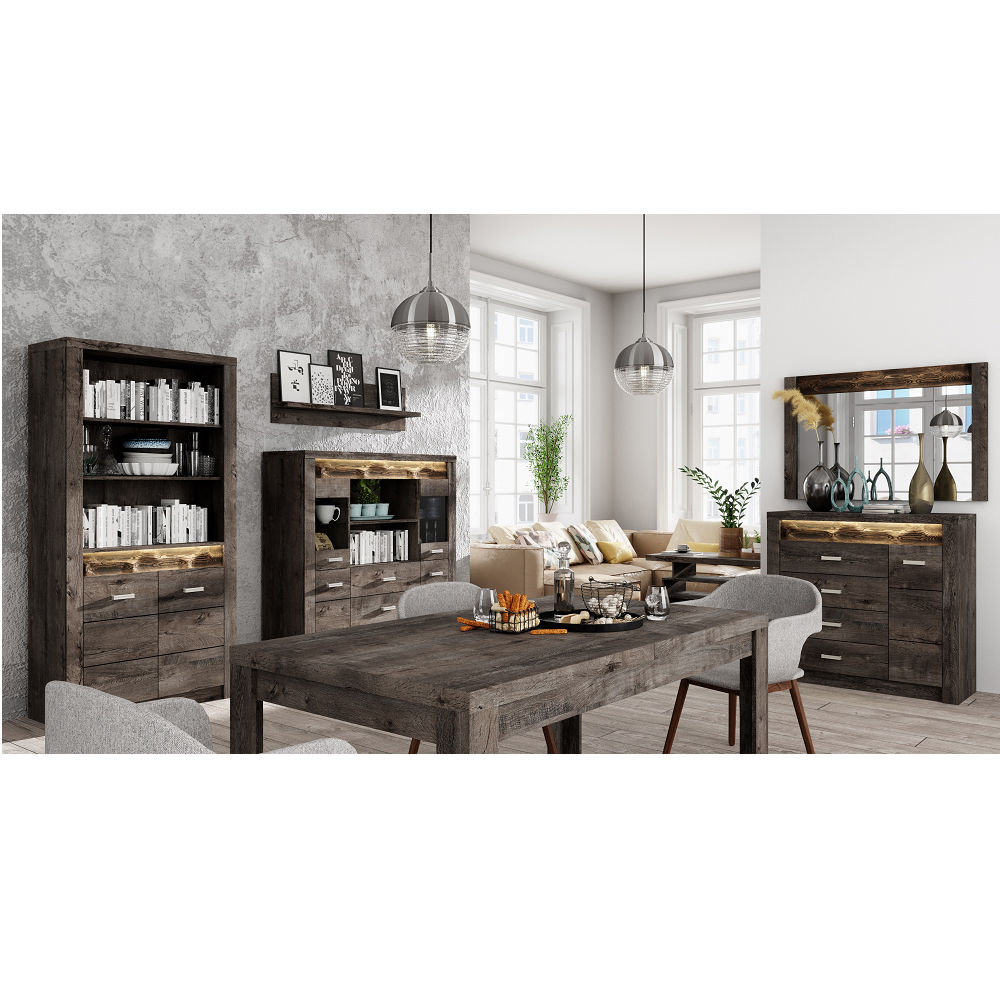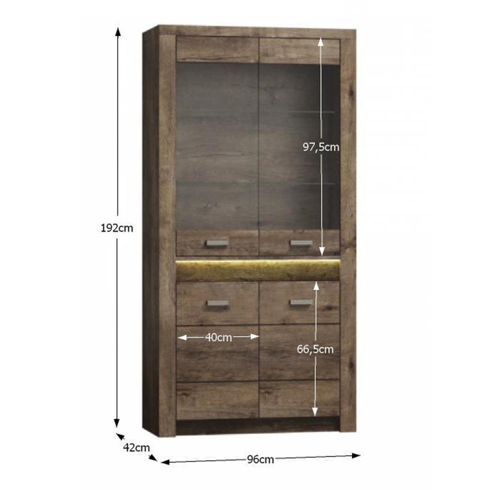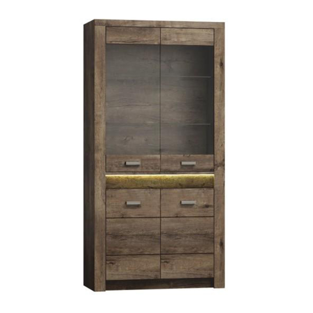 Vitrina interesantă cu uși deasupra cărora se află spațiu închis din sticlă, cu două rafturi din sticlă. Pentru un efect unic recomandăm achiziția iluminatului LED.
