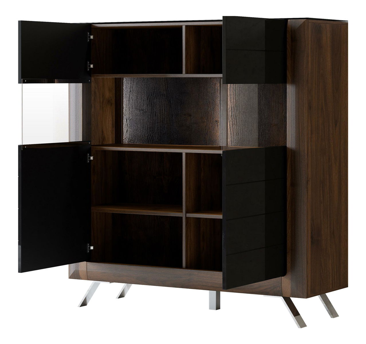 Vitrină Kassie Typ 42 (negru lucios + nuc columbia) (cu iluminat)