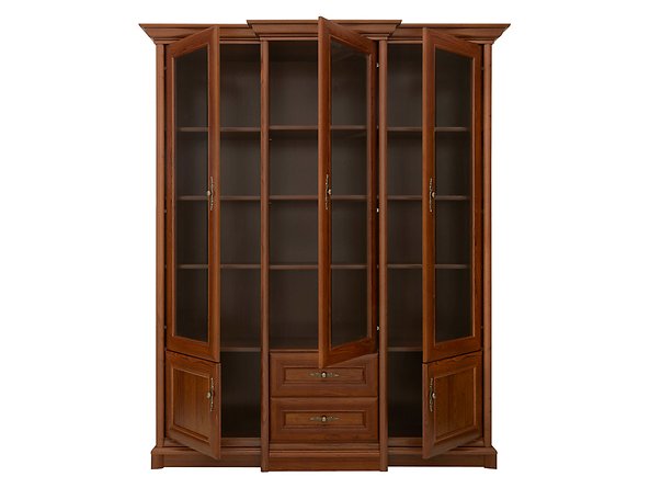 Vitrină majestică intr-un stil rustic frumos, care va captura atenția voastră în mod repetat. Vitrina are elemente decorative frumoase - margini sculptate, fronturi de uşi şi sertare, deasemenea și mânere forjate. Vitrina are 3 uși din sticlă transparentă și rafturi pentru cărțiile voastre preferate, sau alte accesorii. În partea de jos se găsesc două uşi şi două sertare.