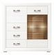 Vitrină atractivă, cu ușa din partea dreaptă sticlată și spațiu de depozitare sub formă de sertare și dulap pentru depozitarea accesorilor preferate.
