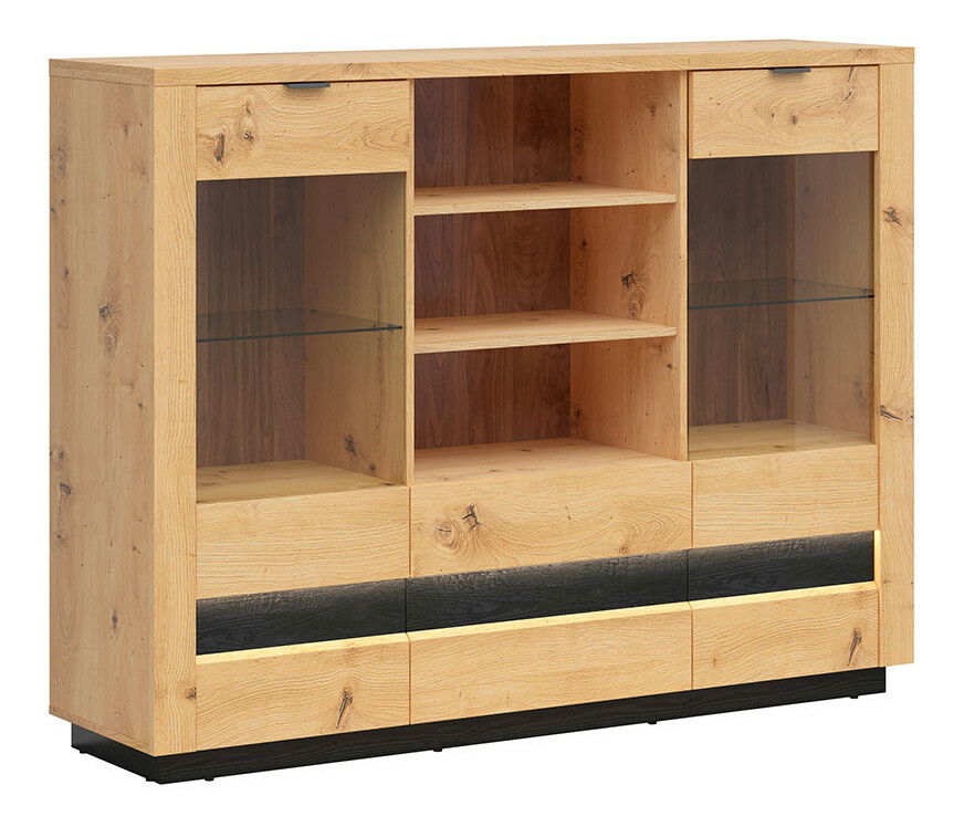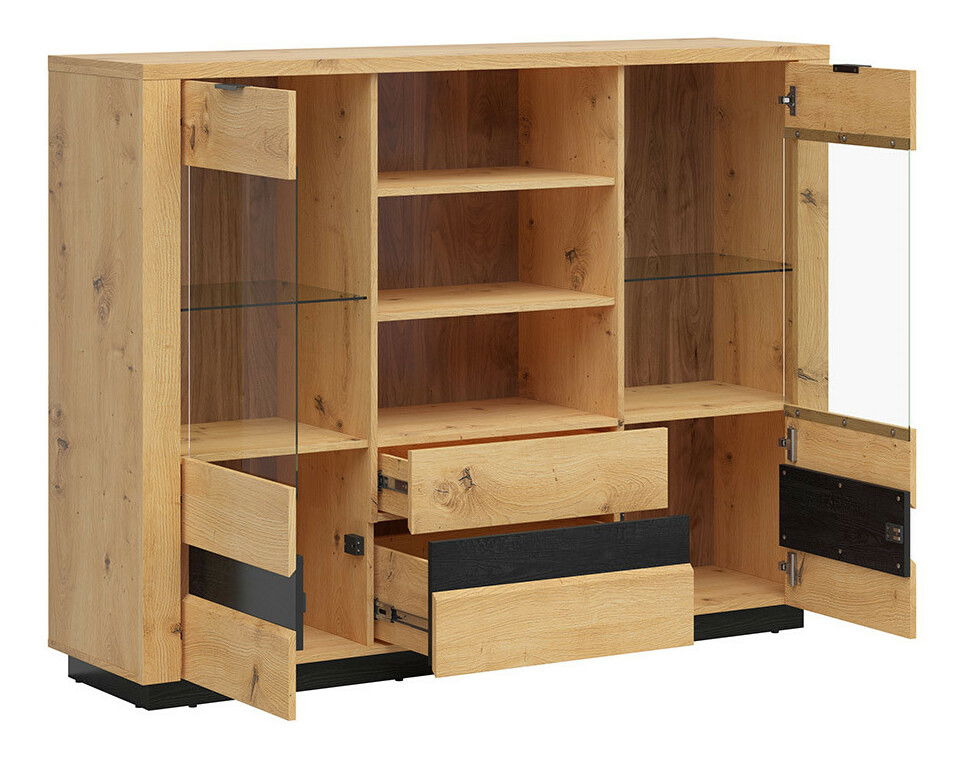 Vitrină Ostia KOM2W2S (stejar artisan + stejar negru)