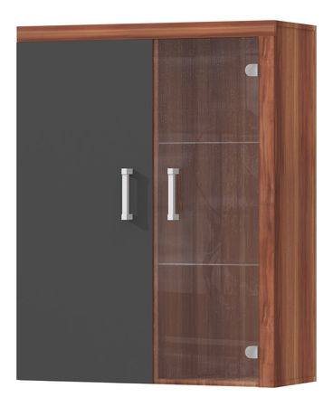 Lăsați să iasă în evidență decorațiunile și cărțile dumneavoastră preferate în această vitrină de design modern. Ușa din dreapta este mai îngustă cu vitrină, iar ușa din stânga este mai lată și plină. Versiunea color a vitrinei de este din lemn de prun în combinație cu designul de grafit.
