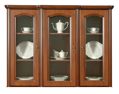 Vitrină mai largă în stil rustic, cu trei uși cu sticlă, care poate fi folosită ca suprastructură pentru alte corpuri din seria de model Natalia. Ușile vitrinei conțin sticlă transparentă. Înăuntrul vitrinei se află polițe pentru decorațiuni, porțelan sau alte accesorii la care vreți să aveți o vedere plăcută. Designul frumos al vitrinei va induce o atmosferă plăcută în interiorul locuinței voastre.