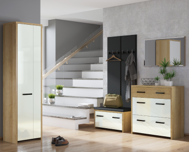 Vitrina de perete Neo II este un plus pentru orice cameră de zi sau birou. Pentru un efect unic recomandăm achiziția iluminatului LED. Mânerele subtile ale ușilor și sertarelor au o lungime de 25 cm. La alegere din mai multe versiuni color.