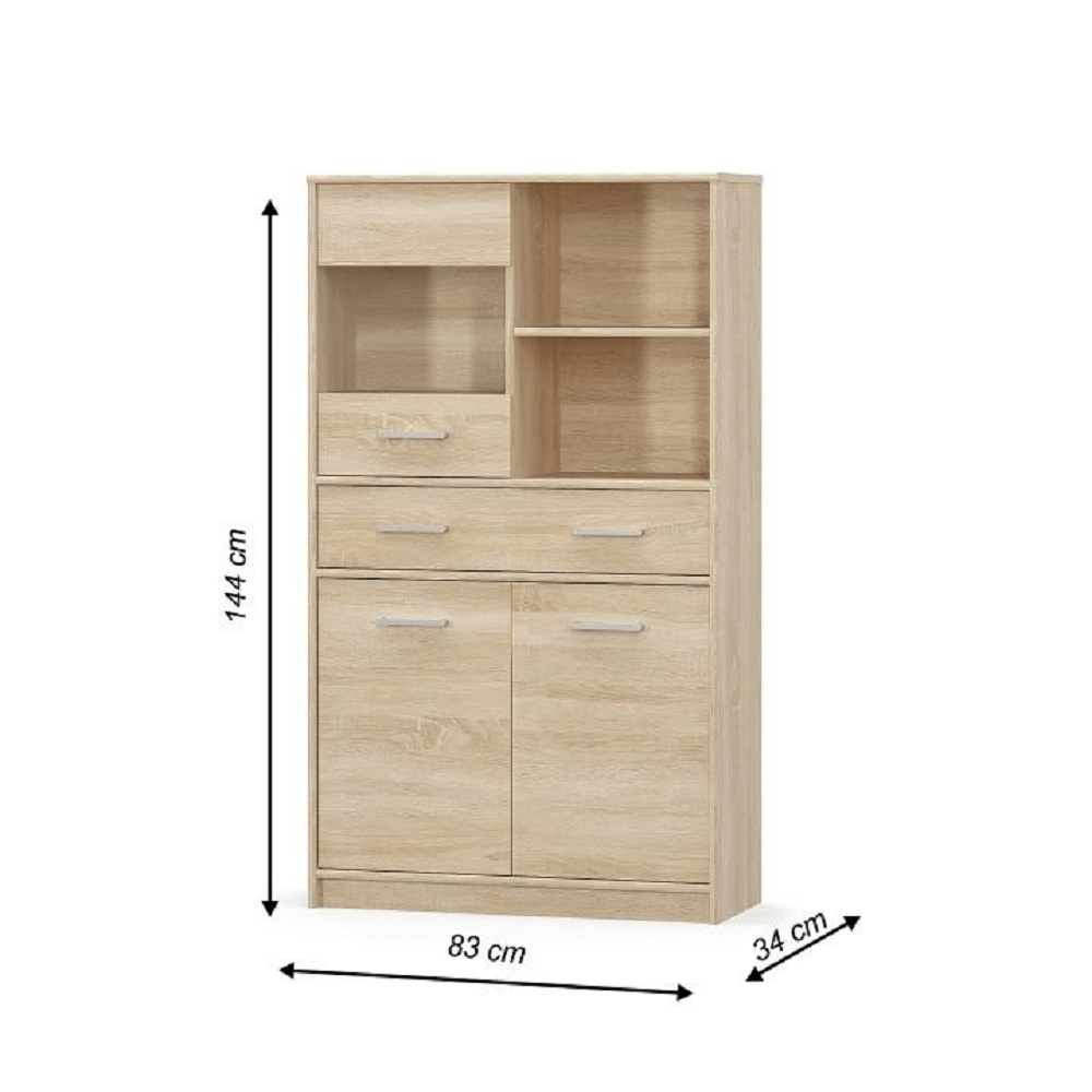 Cu această vitrină practică veți amenaja camera de copii sau tineret foarte ușor. Conține destul spațiu pentru depozitarea celor necesare. Are două polițe deschise, sertare și două uși iar versiunea color este de stejar sonoma.