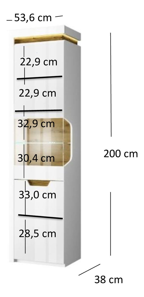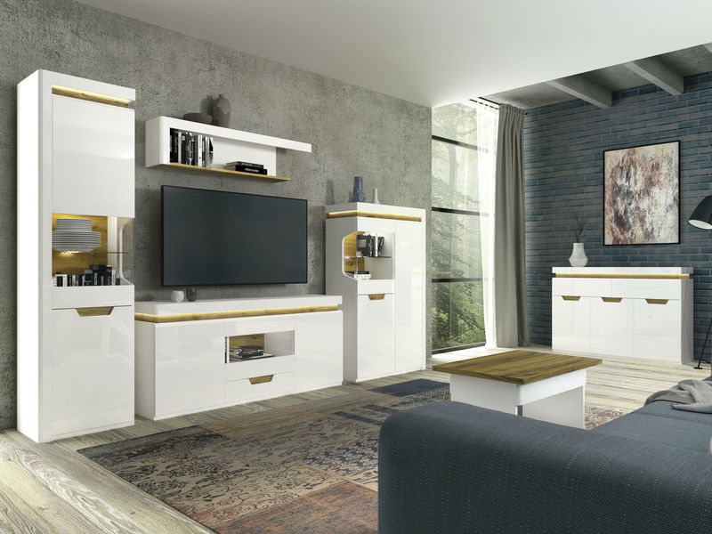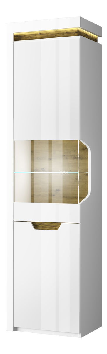 Vitrină Tiera (alb lucios + Stejar navarre)