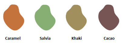 Verdele salvie are un efect calmant. Și terapeuții recomandă pacienților să-și imagineze o pădure. Motivul este simplu – vor să ajungă la relaxul interior. Culoarea kaki este folosită în armată pentru camuflaj și are un efect neutru în interior care evocă armonia cu natura. Recomandăm seturi de canapele și fotolii pe aceste două versiuni color, care vor oferi liniște după o zi stresantă. Dimpotrivă, culorile cacao si caramel sunt culori mai expresive care ies in evidență în living, în principal pe mobilier living modern sau accesoriile secundare. Un fotoliu, covor, perne sau perdele pe aceste nuanțe color evocă un contrast elegant.