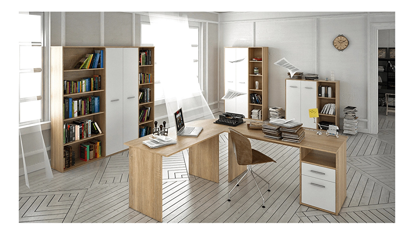 Dulapurile tip etajeră cu rafturi deschise sunt soluția perfectă pentru biblioteci, livinguri sau birouri. Rafturile deschise permit expunerea colecțiilor de cărți, a obiectelor decorative sau a fotografiilor de familie și sunt disponibile într-o varietate de stiluri și dimensiuni, de la modele cu o ușă până la variante cu două uși sau trei uși.