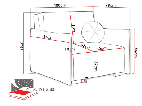 - Fotoliu extensibil Clovea Glov I (Negru) (cu sp. depozitare)